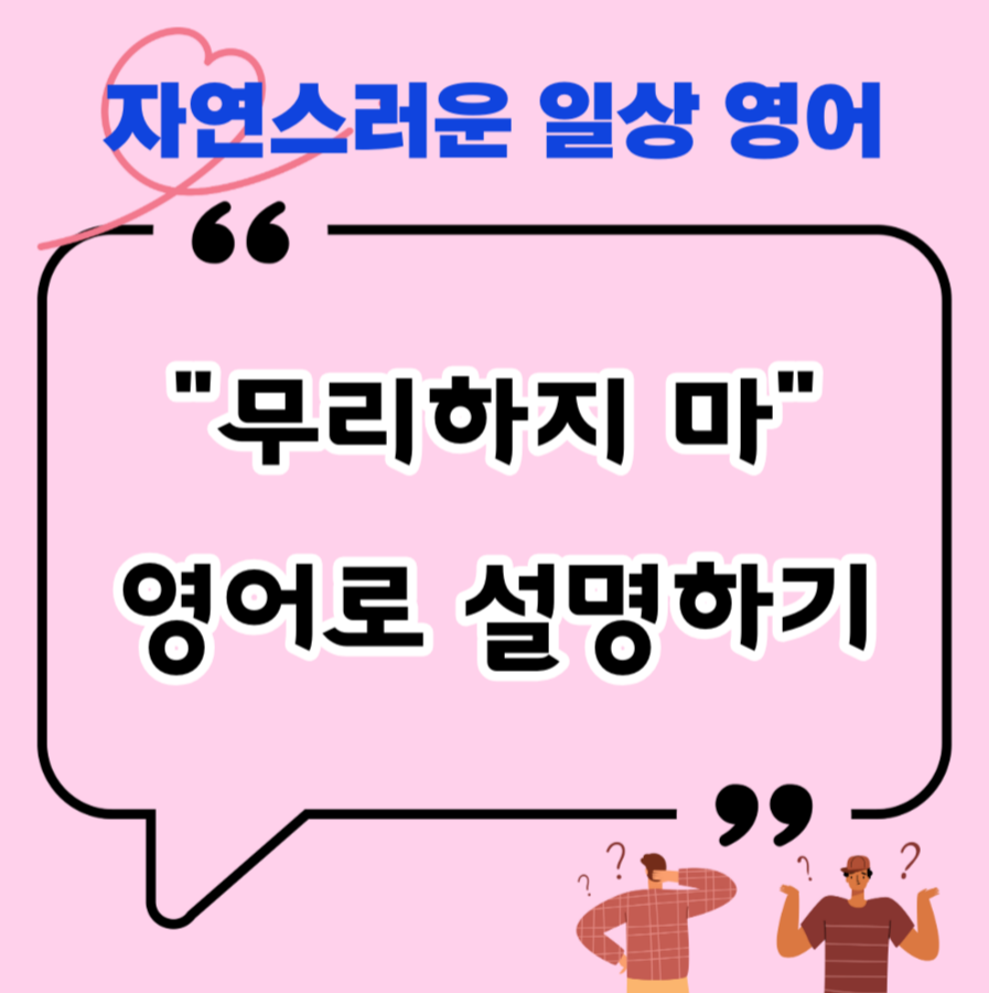 위 표현들은 무리해서 어떤 일을 과도하게 하지 말라는 의미를 담고 있는데, 우리는 부담갖지 말라는 의미에서도 '무리하지 마'라는 한국어 표현을 사용하죠. 그런 표현은 영어로 어떻게 설명할 수 있을지 다음 글에서 확인해 보아요!